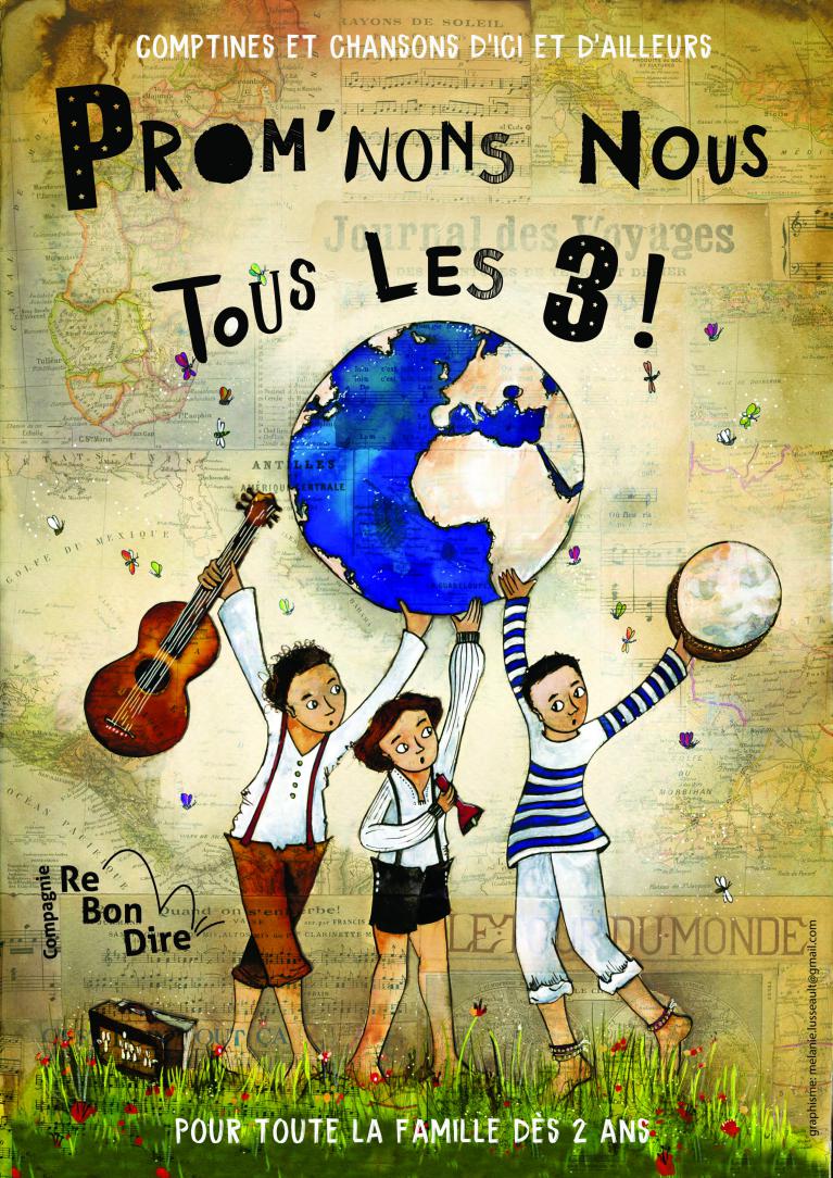 « Prom’nons-nous tous les 3 ! », invite au voyage au travers de mélodies, rythmes et langues du monde. Adressé à plusieurs voix, ce voyage polyphonique et polyrythmique permet au jeune public et aux grands enfants que nous sommes, de découvrir différentes expressions orales. Une rencontre de l’Autre et de cette part étrangère que nous avons en chacun de nous – que nous pouvons écouter ensemble ou pour soi toucher du doigt ou du regard.
